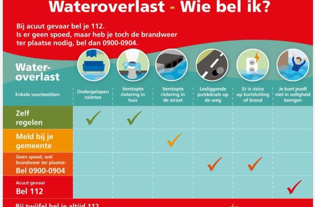 Wateroverlast is erg vervelend en om snel te kunnen handelen is het belangrijk dat je weet wie je moet bellen.