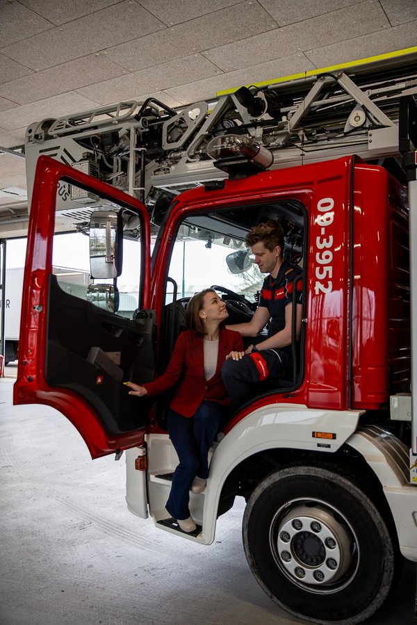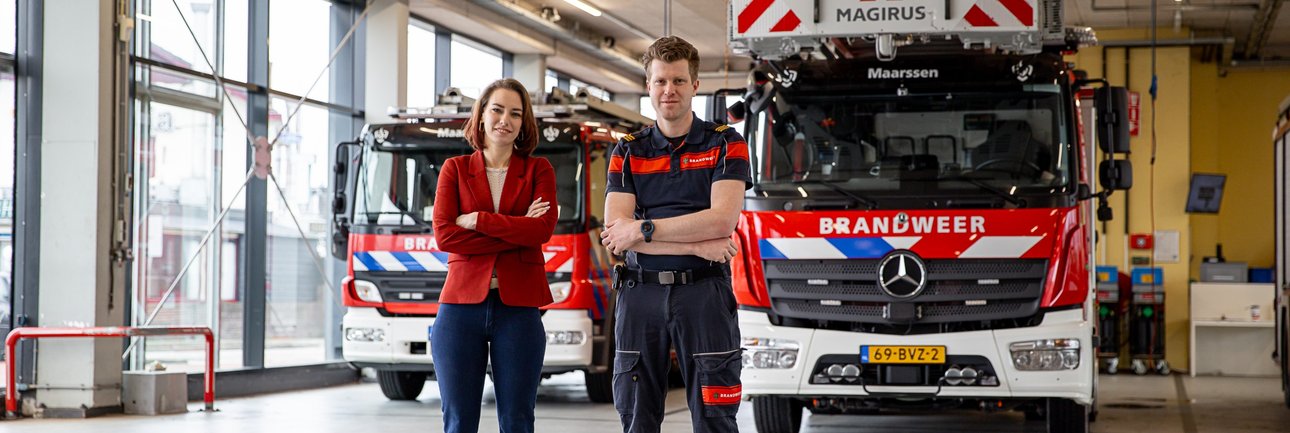 Dat ze inmiddels ook allebei bij de VRU werken, maakt het plaatje compleet. Patrick werkt al drie jaar bij team ARBO, een functie die hem stabiliteit én flexibiliteit geeft — handig, want vanuit post Maarssen kan hij direct uitrukken. Nicky besloot Iom een jaar later voor de VRU te gaan werken, vanuit de wens om iets voor inwoners te kunnen betekenen, juist toen manschap worden nog niet op de korte termijnplanning stond. Ze is daar meteen eerlijk over het leven als ‘vrouw van de brandweer’: als Patricks pieper gaat, staat alles stil. “Gelukkig weet de VRU precies wat het betekent om met een brandweerman samen te leven. Die flexibiliteit maakt het een ongelooflijk fijne werkgever.”