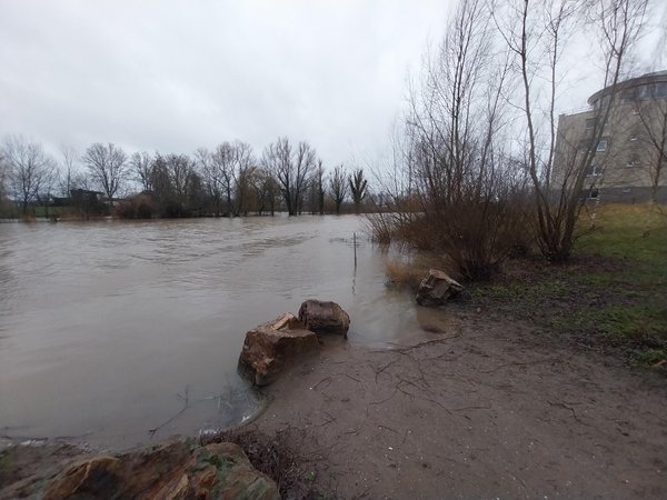 Ik besluit ter plaatse te gaan en zie in Leerdam met eigen ogen dat de Linge behoorlijk ‘hoog staat’. Anderzijds lijkt de dreiging op de woningen mee te vallen. Dat bevestigt ook een bewoner van één van de huizen die dicht aan de oevers staat. Dat neemt niet weg dat bij een enkele woning het water inmiddels gevaarlijk is genaderd. Met behulp van zandzakken trachten de bewoners het water buiten te houden. En met succes! Aan het einde van de middag neemt de neerslag af. Later die avond meldt het waterschap dat de verwachte stijging is meegevallen en het waterpeil stabiliseert. Voor zondag wordt aanmerkelijk minder neerslag verwacht. Het waterschap gaat door met extra pompen.
